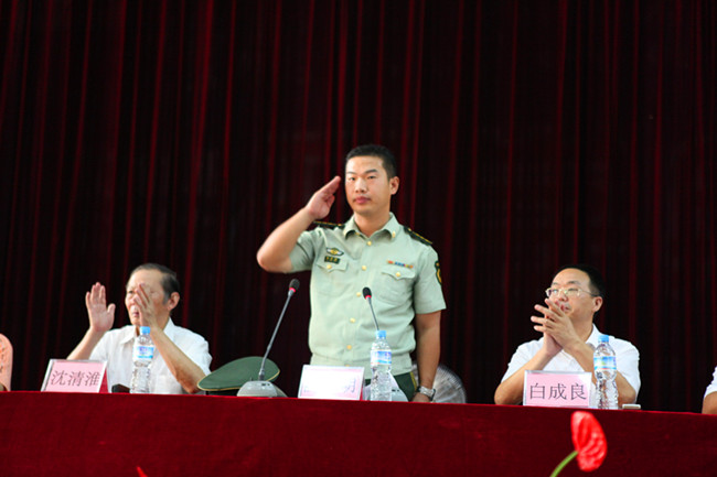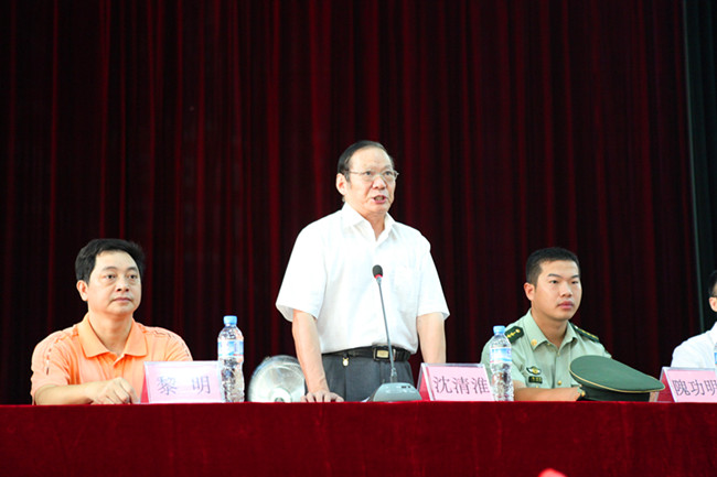 沈清淮校长代表学校讲话,他指出,军训是学生走进大学的第一课,军训有助于学生提 高认识、端正态度,他希望全体新生在军训中严格要求自己,挑战自我,克服一切困难,磨练自己的意 志,同时要遵守纪律,注意安全。沈校长还指出,天气炎热,因此我们的军训活动也相应作了调整:一 是调整军训内容,将室外的训练内容调整为内务整理、国防教育等室内内容;二是调整军训时间,用 “一早一晚”气温相对较低的时间段开展军事训练,即上午军训不超过9:30,下午军训不早于晚上6:30;三是调整军训场所,所有 军训项目全部调整为室内军训。这样既确保了军训效果,又在军训活动实现人性化、科学化、规范化的目标。