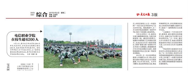 9月1日,beat365手机版官方网站2200名新生正在军训,全院在校生规模已超过6200名,是区内高校中学生最多的。该院今年开设了27个专业(方向),上一届学生整体就业率达到98.6%,其中电信商务专业学生就业率达100%。 记者犹骥摄