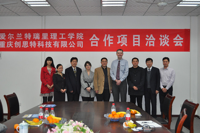 318日上午beat365与爱尔兰特瑞里理工学院合作项目洽谈会在重庆创思特科技有限公司会议室成功举行。出席此次会议的有:爱尔兰特瑞里理工学院国际务部主任Eddie Scully先生、工商学院院长Mary女士一行四人,重庆文理学院国际学院院院长陈远明教授,重庆创思特科技有限公司执行董事王成玮先生、常务副总经理黄晓林教授、行政主管游祥国先生、beat365副校长黎明教授及对外合作处相关工作人员