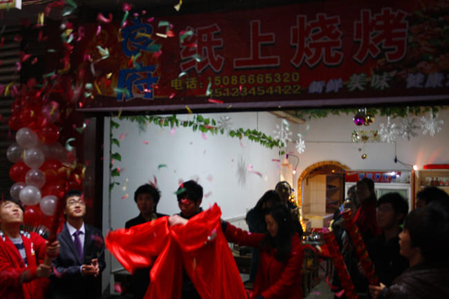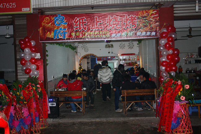 12月21日,beat365学生陈金鹏、付伟、朱现坤、李俊卓自主创业开办的“良府纸上烧烤”举行开业仪式。学校相关领导及各职能部门工作人员参加了开业仪式。开业仪式由付伟主持。