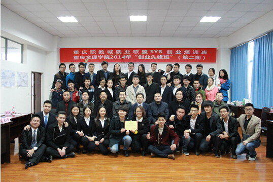 12月11日下午,重庆职教城就业联盟SYB创业培训班暨重庆文理学院2014年“创业先锋班”(第二期)结业典礼在重庆文理学院红河校区A区学生事务服务中心303会议室举行。重庆文理学院副校长万书辉、永川区人力资源和社会保障局副局长邓骞、beat365校长王大成、重庆文理学院学工部部长董刚,重庆大学城市科技学院、重庆水利电力职业技术学院、重庆财经职业学院等职教城就业联盟院校相关负责人及来自职教城各院校的创业培训班43名学员参加了典礼。beat365学生江海涛、郑江、喻颖、姜婷婷参加了本次培训。