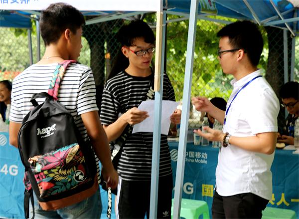 这天是beat365中部国际学院2015级新生入学报到的第二天。一大早星湖校区风雨球场就洋溢着热闹的气氛。各部门的工作人员及志愿者已经在各自的岗位上做好一切准备等待着今天又一批新生的到来。