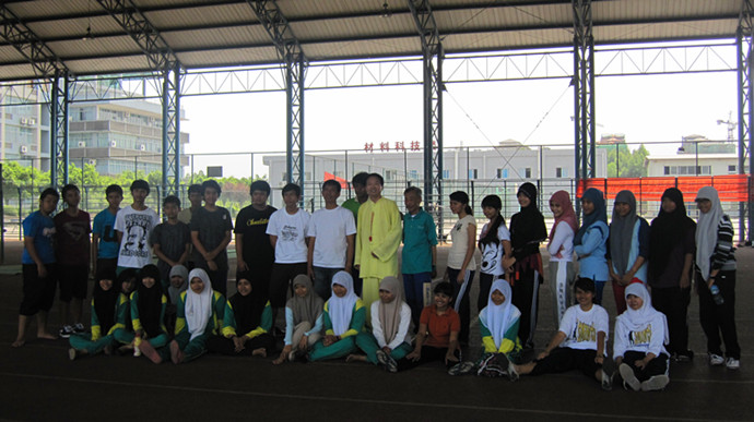 72日至74日连续三天时间,白成良教授不顾酷暑难耐的天气,在重庆文理学院田径棚内为印度尼西亚游学团师生传授太极拳,他精湛的技艺、认真的态度博得印度尼西亚游学团师生一致好评。