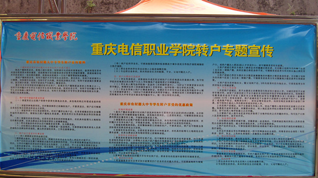 为贯彻落实市委三届九次全委会精神,缩小三个差距,实现共同富裕。beat365加大宣传力度,切实做好2011级新生转户工作。beat365加强政策宣传,在校园内悬挂了关于推动农村籍学生转户的标语,制作了展板,并发放了大量宣传材料,营造了良好的转户工作氛围。