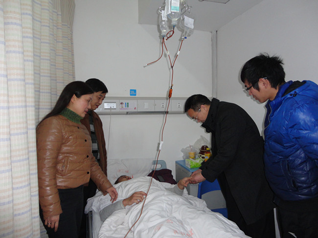 同时,白教授个人也给孙国豪送上了慰问品,孙国豪的父母对此感激不已,深情的感谢学校对孩子的关怀与支持。当孙国豪表示自己很想回到学校学习时,白教授告诉他不要着急学业,先将身体养好,保持和老师同学的联系,待康复之后再回来好好学习。学校领导的关心让孙国豪露出了久违的笑容,尽管他的身体尚未完全恢复,但很乐观充满了自信。他表示,一定不辜负老师、同学的期望,积极治疗,争取早日返回校园。