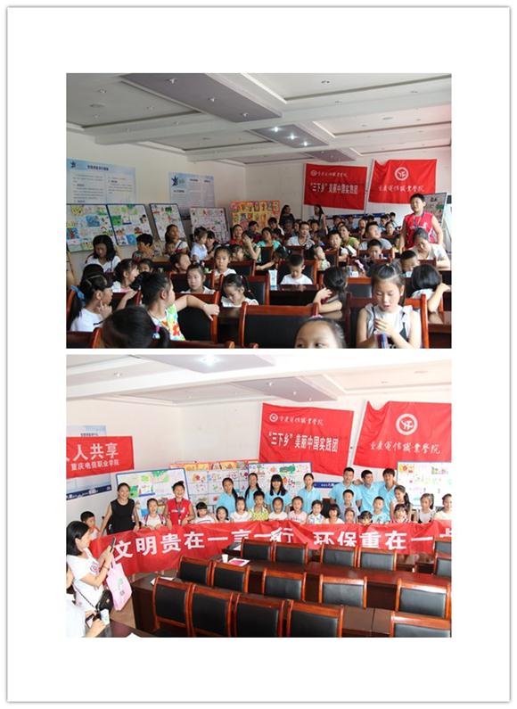 志愿者们首先向家长和小朋友们进行环保知识宣讲,讲述何为美丽中国,美丽家园?龙滩子街道办事处,四季分明,东依巴岳山群峰峻秀,北有龙水湖湖水清澈、水天一线,西临响水河,依山带水,风光秀丽。如此得天独厚的生态环境,需要大家共同去维护、去建设,一定要保护水资源,防止环境污染,让小朋友们明白保护环境从他们开始,重在一点一滴。
