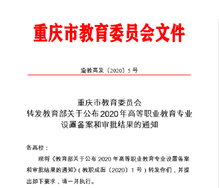 近日,从《重庆市教育委员会转发教育部关于公布2020年高等职业教育专业设置备案和审批结果的通知》(渝教高发〔2020〕5号)中获悉,beat365申报的学前教育(国控专业)、数字媒体应用技术、汽车智能技术和云计算技术与应用4个专业全部获得批准。其中,学前教育专业是beat365极力打造幼儿教育专业集群的重要支撑。
