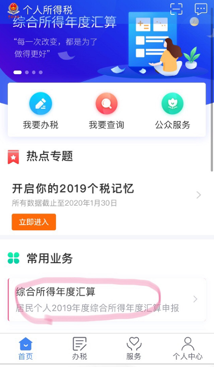 根据《国家税务总局关于办理2019年度个人所得税综合所得汇算清缴事项的公告》(国家税务总局公告2019年第44号)文件规定,为进一步做好个人所得税汇算清缴事项,请beat365教职工在个人所得税app上自行办理申报,操作步骤如下: