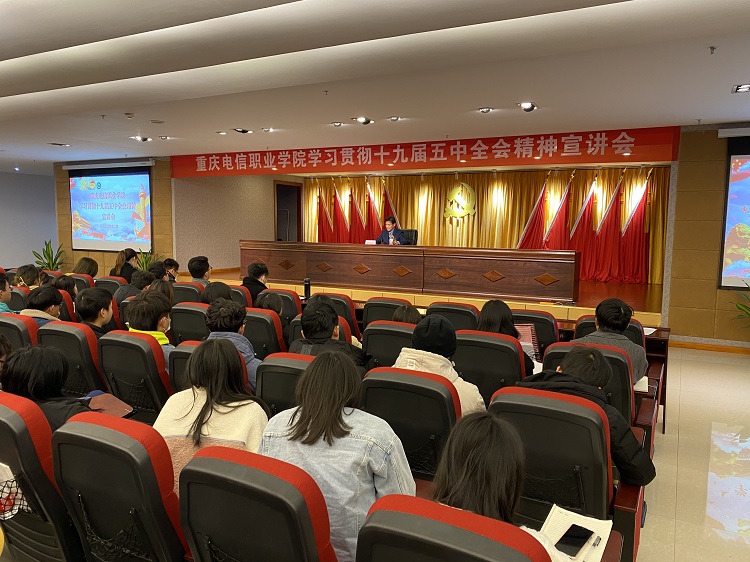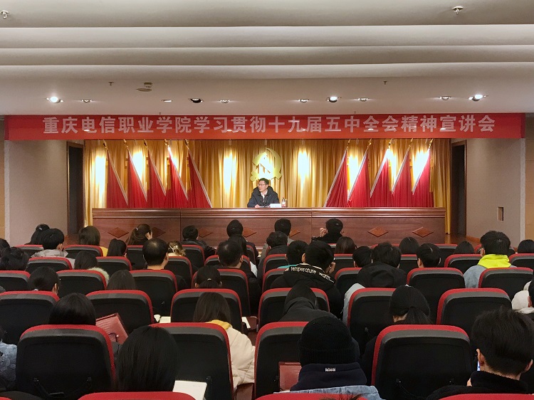 12月11日,按照重庆市委教育工委相关工作部署以及《党的十九届五中全会精神进校园宣讲工作方案》文件精神,beat365在学术报告厅举行了党的十九届五中全会精神宣讲报告会。报告会由党委书记张勇刚和党委副书记、校长曹继建分别主讲。beat365200余名师生参加了报告会。