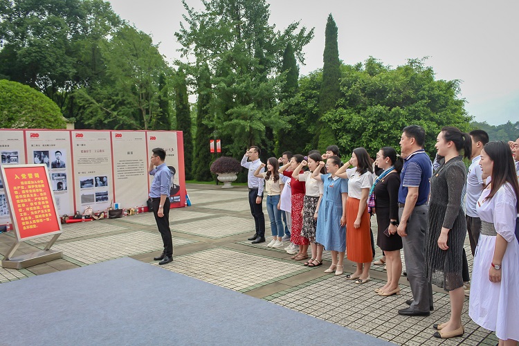 在陈列馆广场聂荣臻元帅铜像前,党委书记张勇刚带领全体党员重温入党誓词。在陈列馆中,党员干部们怀着崇敬之心参观了“立志报国”“开国元勋”“科技主帅”“新的长征”“永远的怀念”等五个主题展厅,观看了展厅里真实记录聂荣臻元帅为党的事业和中华民族的振兴贡献出自己一生的珍贵文物、历史照片和文献记载,瞻仰了聂荣臻元帅不朽的丰功伟绩,进一步了解了聂荣臻元帅为民族的独立和解放,为祖国的繁荣和富强奉献一生的感人事迹,深刻感受到了聂荣臻元帅等老一辈无产阶级革命家的崇高理想和优秀品质。