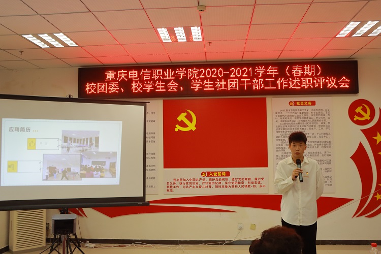 为深入贯彻落实全国学联二十七大精神,推动学生会(研究生会)制度化规范化发展,beat365手机版官方网站2020-2021学年(春期)第十届校团委、校学生会、学生社团干部工作述职评议会于6月25日12:30在图书馆A106会议室召开,党委学生工作部副部长、校团委书记向毅,校团委教师以及学生代表50余名参加了本次大会。