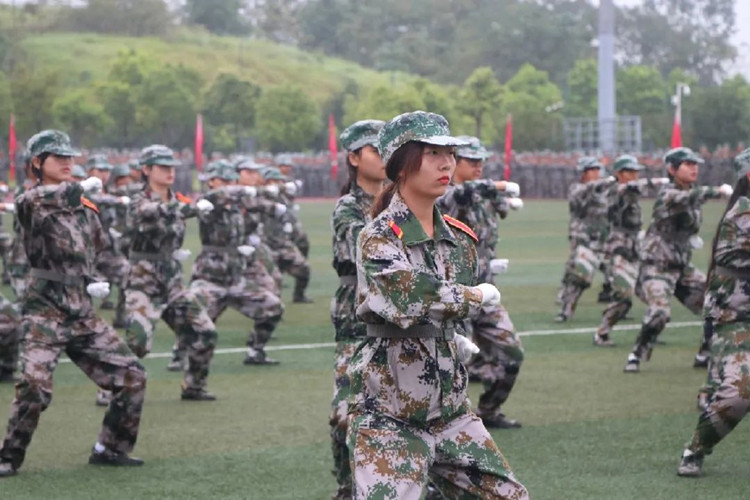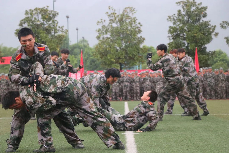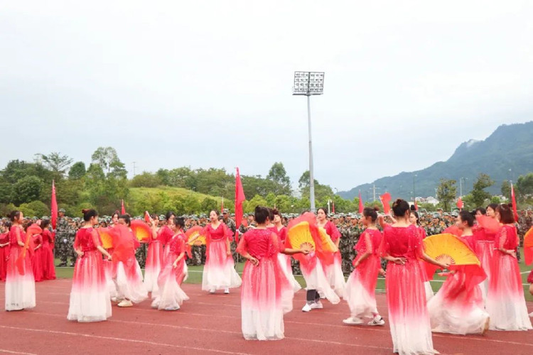 党委学工部部长潘妮代表学校对2021级新生的到来表示热烈欢迎和诚挚问候。随后由承训教官指挥,进行了军训成果汇报展示。展示包括歌唱表演《歌唱祖国》、标兵就位分列式、军体拳、战术演练等方面的内容。