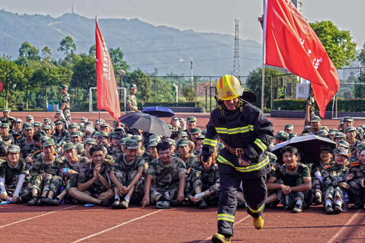为了提升校园消防安全管理标准,切实达到宣传教育目的,增强学生消防安全意识,提高学生自防自救能力。9月24日下午,重庆双桥经开区消防救援大队深入学校开展“消防安全知识讲座进军训”活动,上好新生入学“消防安全第一课”。