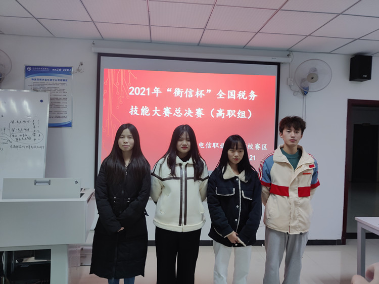 11月21日,2021年“ 衡信杯 ”全国税务技能大赛全国总决赛如期举行。经过激烈角逐,由2019级财务管理专业学生付刚、2020级财务管理专业学生廖仕永、2020级财务管理(中职直升)班学生肖林红、周佳雪组成的队伍在赵琴、吴巧婷老师的指导下,冷静发挥,凭借扎实的专业功底,荣获全国二等奖。