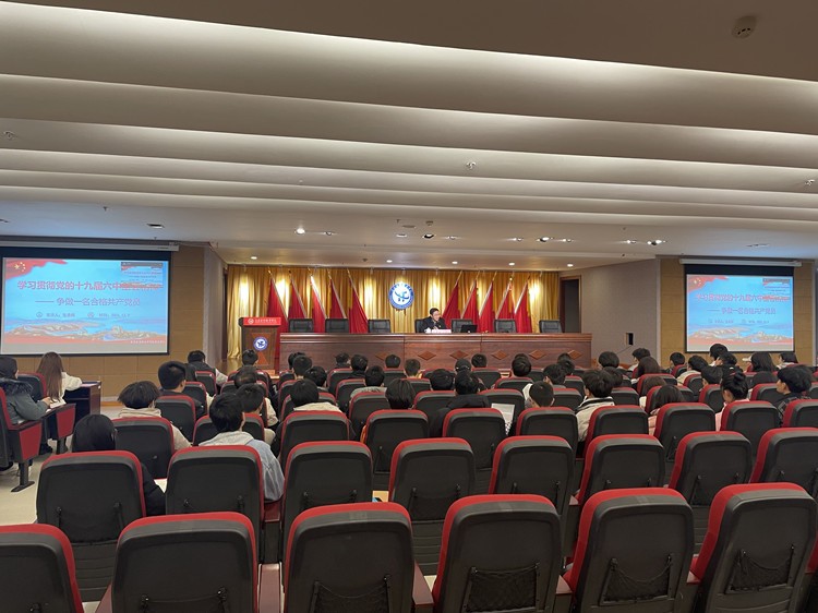 他强调,同学们要加强对《党章》的学习,端正入党动机;进一步深入学习贯彻党的十九届六中全会精神,坚持以习近平新时代中国特色社会主义思想为指导,增强“四个意识”、坚定“四个自信、做到“两个维护”,肩负起历史使命,肩负起时代重任,争做时代新人。(通讯员:李成涛)