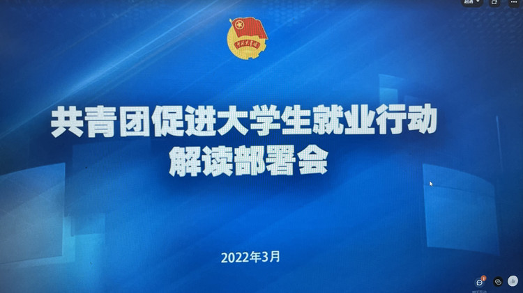 为贯彻落实党的十九届六中全会精神和中央经济工作会议精神,推动“共青团促进大学生就业行动”落细落实。2022年3月9日15:00,共青团beat365手机版官方网站委员会组织相关人员在图书馆A106会议室参加团中央“共青团促进大学生就业行动”线上解读部署会。党委副书记、副校长代敏,党委学生工作部部长潘妮,校团委书记、党委学生工作部副部长向毅出席,各二级学院团总支书记、校团委全体成员、就业指导中心全体成员参加了本次会议。