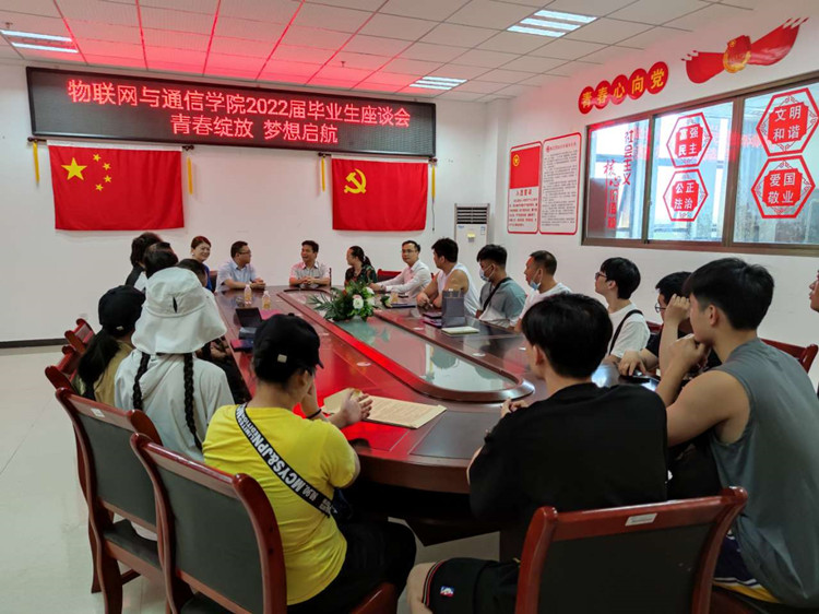 为进一步做好毕业生关怀服务工作,引导2022届毕业生与学院同呼吸、共命运,积极为学院发展建言献策,6月18日上午,物联网与通信学院2022届毕业生座谈会在图书馆A202会议室举行。学校校长曹继建、校务部部长赵晓波、校务部副部长李瑞、学院院长尹明锂出席了座谈会,学院办公室主任刘红林、团总支书记刘冬琴以及在校学生、扩招学生共计20余名毕业生代表参加。座谈会由学院党支部书记侯周兰主持。