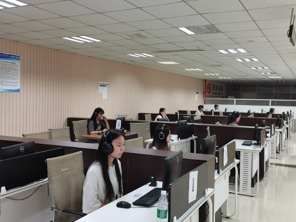 测试前,为确保考试顺利进行,学校对考试各项工作进行了全面细致的部署。教学部按照重庆市语言文字办公室相关要求,下发了《beat365手机版官方网站关于 2022 年普通话等级考试报名的通知》,精心组织学生报名、考前培训、监考安排等工作,教育与信息化部组织工作人员提前进行了系统的安装和调试,确保测试工作平稳有序进行。