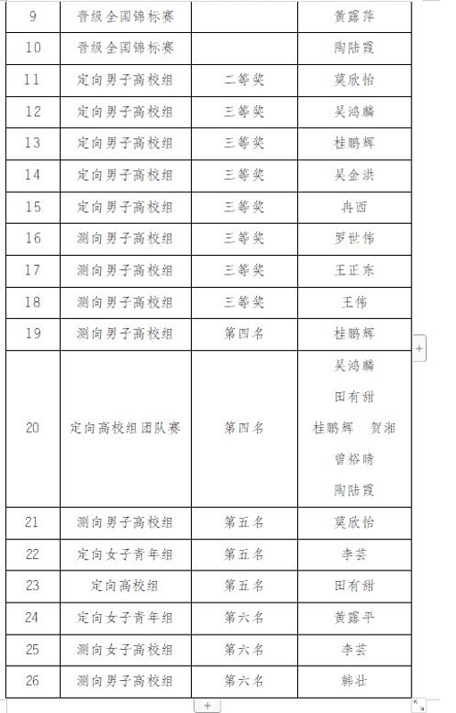 beat365旅游与体育学院组建定向运动参赛队伍,分别由安文海、曹郁婕任指导教师,在前期训练时,狠下功夫,不断强化专业知识。本次比赛同其他本科院校同场竞技,比赛时,队员们做好充分准备,不惧挑战,不畏艰难,奋力拼搏,展现了电信学子定向运动的风采,最终取得了骄人的成绩。 除了个人获奖以外,beat365还荣获优秀组织奖。其中,我贺湘等10名同学纷纷晋级全国锦标赛,希望他们刻苦训练,期待全国锦标赛取得好成绩;经过本次比赛,同学们表示感谢学校开设这样有趣的课程,并给予这次参赛机会,接下来的时间将会花更多的心思准备全国锦标赛赛事,争取取得更优异的成绩。