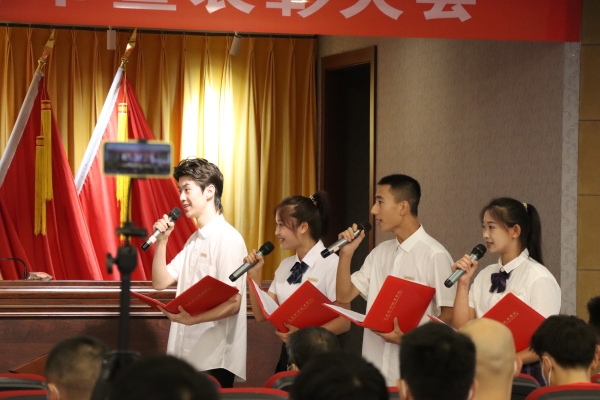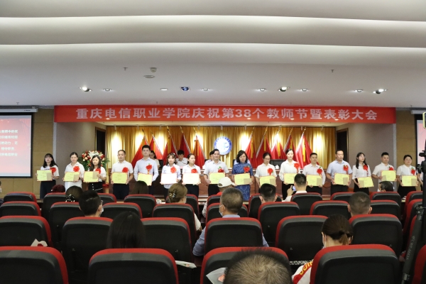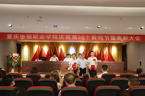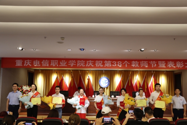 大会在庄严的国歌声中拉开帷幕。会上,党委书记张勇刚宣读了《beat365手机版官方网站关于表彰第38个教师节先进集体、优秀个人的决定》和《beat365手机版官方网站关于颁发在校工作十年证书的决定》。校领导对优秀教师、优秀教育工作者、优秀辅导员(班主任)、市级竞赛获奖者进行了表彰,向“在校工作十年”教职工颁发荣誉证书;副校长皇甫涛带领全体新教师庄严宣誓,教师代表在现场为新教师佩戴校徽,全校教职员工共同见证了这一神圣时刻;随后,校团委书记、学工部副部长向毅与四位大一新生带来饱含深情的 “桃李缘”诗歌朗诵,为教师节献礼。