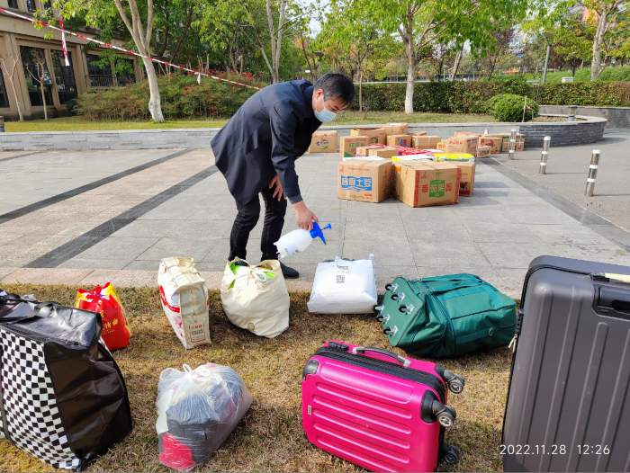 校外居家办公的党员同志自发的组成了自愿者服务小分队,为封控在校的教职员工提供各类暖心的服务。天气降温了,为老师们取送厚衣物;家里宠物缺水少粮了,及时上门照顾补充;网购的东西寄到家里了,及时代收代取;储备的个人物资“断货”了,及时到超市代购等等。