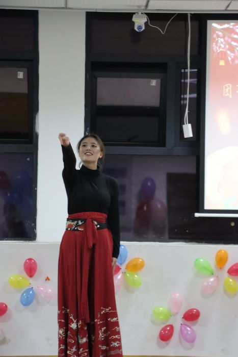 活动由校团委老师张文森主持,本次活动由才艺表演、游戏环节、有奖竞答等环节组成。在活动过程中,由学校翱翔大学生艺术团为大家带来精彩的开场傣族舞蹈,少数民族的同学也用舞蹈、歌曲和服饰展示了各民族的风采。在游戏环节中,同学们积极参与击鼓传花活动并分享了各自民族的风土人情、文化特色、生活习俗,也表达了对日益强大和繁荣富强的祖国的自豪感,畅谈了在校期间学习生活的感受体会,也对学校民族文化活动、学校建设等方面提出了意见和建议。现场气氛活跃。