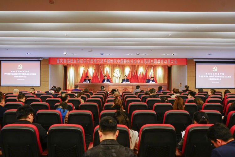4月24日下午14:00,学校在图书馆A501学术报告厅召开学习贯彻习近平新时代中国特色社会主义思想主题教育动员大会,深入学习贯彻习近平总书记在中央主题教育工作会议上的重要讲话精神,全面落实市委教育工委主题教育工作安排,动员部署学校主题教育工作。