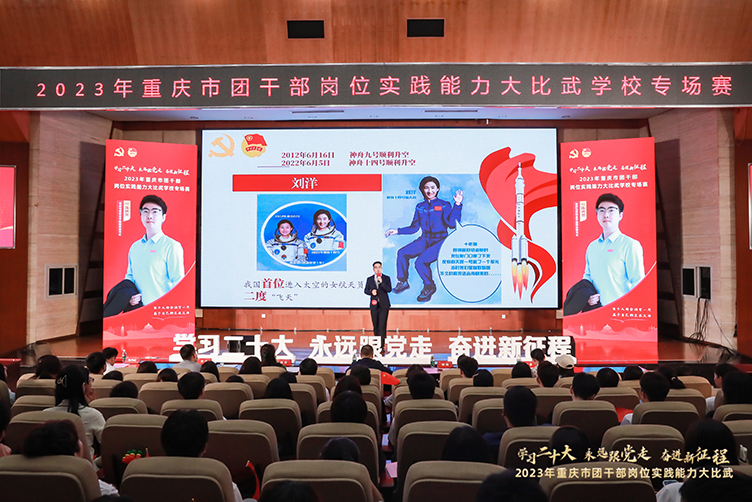 2023年6月16日,由共青团重庆市委主办的“学习二十大 永远跟党走 奋进新征程”2023年重庆市团干部岗位实践能力大比武学校专场赛在重庆工业职业学院举行。校团委副书记陈秋熙代表beat365共青团战线参赛,充分展现了重电信职院青年团干部奋发作为、积极向上、务实担当的良好精神风貌。