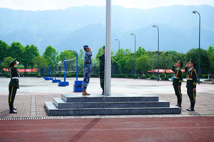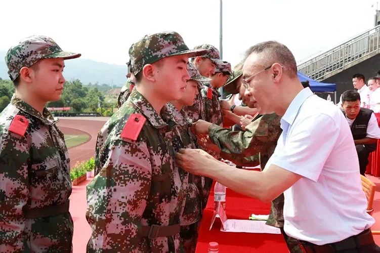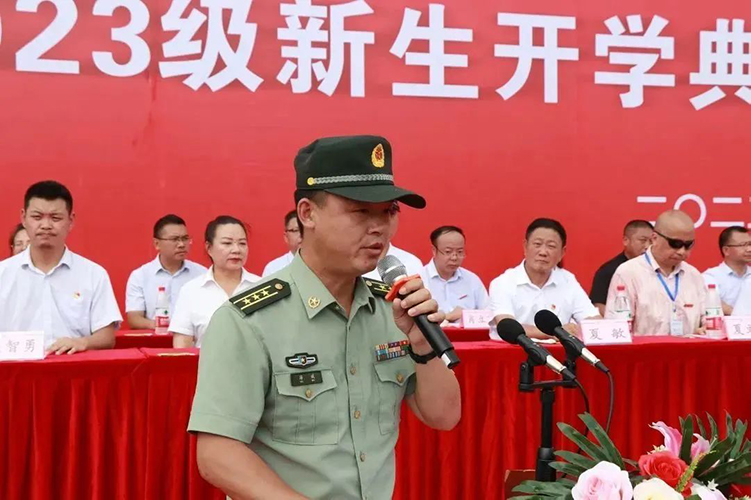 大足区人民武装部副部长游斌代表军训团讲话,他希望同学们一定要珍惜军训机会,高标准、高质量、安全顺利地完成军训任务,超越自我,不断前进,让青春年华在未来的征途中放射出灿烂夺目的光彩!