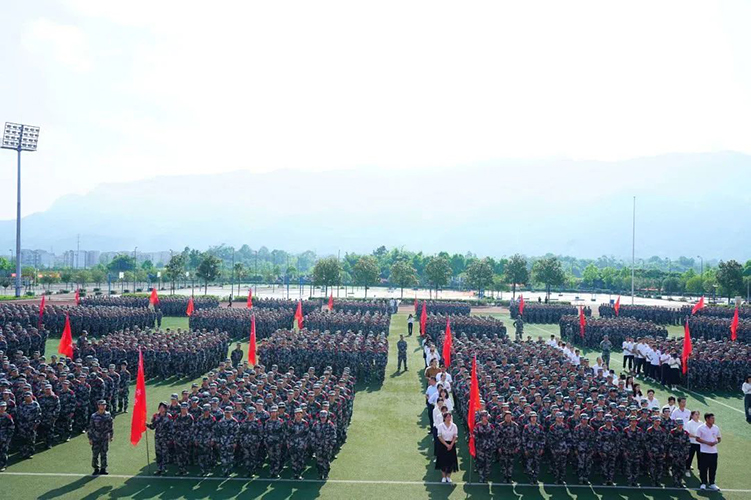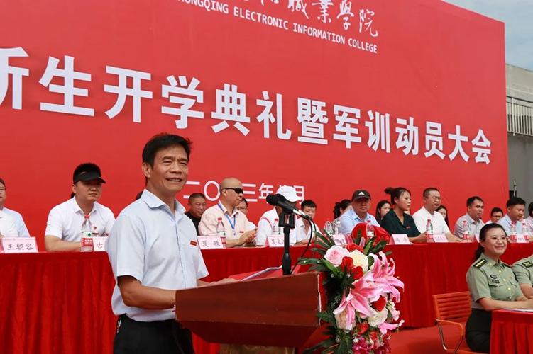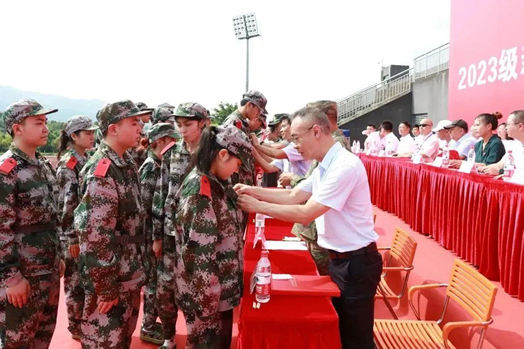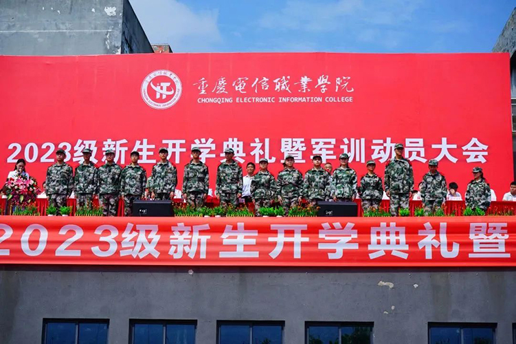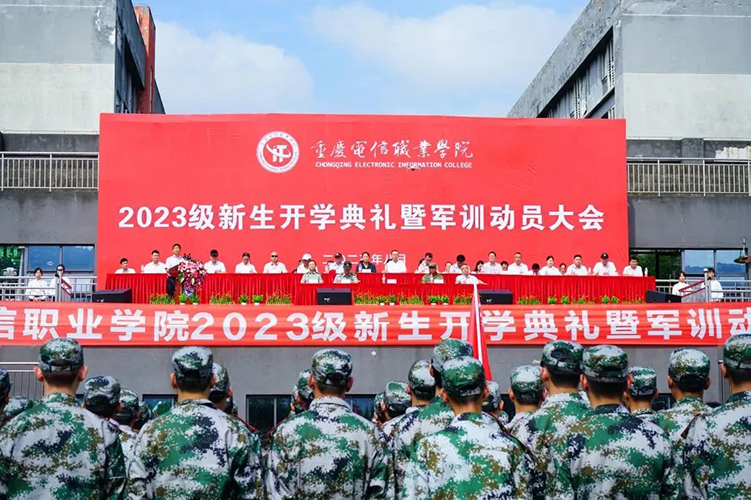 8月30日上午10:00beat3652023级新生开学典礼暨军训动员大会在学校田径运动场隆重举行。大足区人民武装部副部长游斌、军训团团长刘正伟,学校领导曹继建、皇甫涛、代敏,各二级学院党政负责人、职能部门负责人、校企合作单位负责人、教职工代表、新生辅导员、军训教官及2023级全体新生参加了大会。