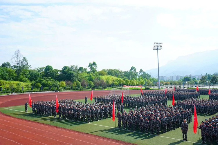 会议由党委学工部部长潘妮主持。大会在庄严的国歌声中拉开帷幕。校长曹继建代表学校党政,对大足区人民武装部各位领导和教官表示热烈的欢迎!对全体新同学迈入大学生涯表示衷心的祝贺!他从三个方面对同学们今后三年的大学生活提出了殷切希望:一是要爱国、敬业、诚信、友善,做一个品德高尚的人;二是要学好知识和技能,做一个有本事人;三是要锻炼身体、增强体质、做一个身心健康的人。并要求大家在军训中要提高认识、端正态度、服从命令,听从指挥、严格训练,要练就强健体魄、磨炼坚韧品质、提高思想觉悟、增强组织纪律观念,为顺利完成学业成为合格的大学生打下坚实基础。