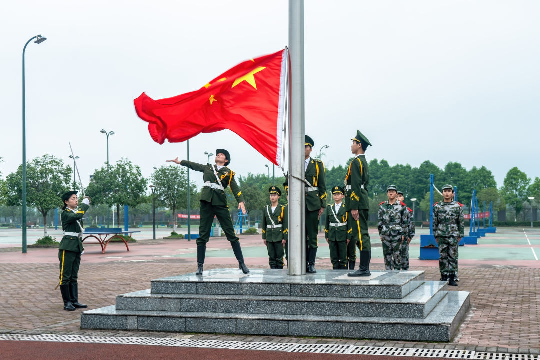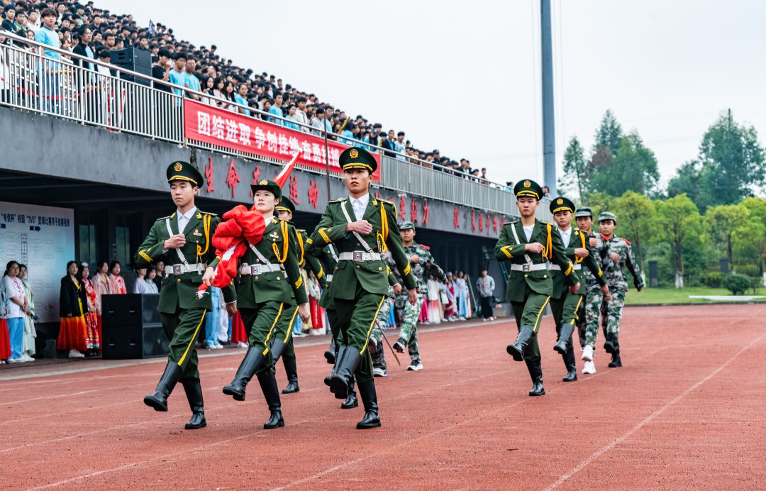 伴随着国旗护卫队雄壮嘹亮的口号、铿锵有力的步伐,五星红旗在空中冉冉升起,运动会在庄严的国歌声中正式拉开序幕。