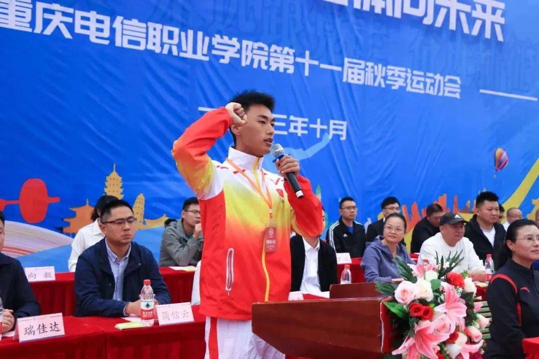 运动员代表陈南君和裁判员代表吴洪麟分别发言并庄严宣誓:在本次运动会中,将遵循“公平、公正、公开”的原则,弘扬“更快、更高、更强”的体育精神。