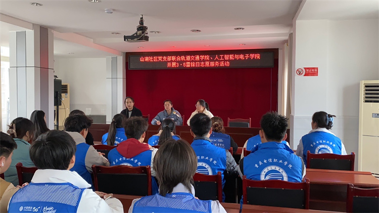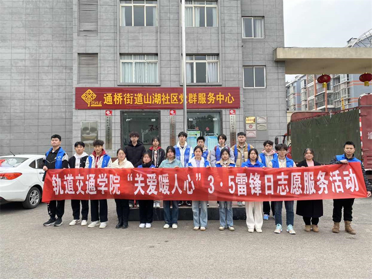 为弘扬“全心全意为人民服务”的雷锋精神, 充分发挥志愿服务实践育人作用,吸引凝聚青年力量。3月5日下午,人工智能与电子学院、轨道交通学院师生党员来到大足区通桥街道山湖社区,开展“关爱暖人心” 3·5雷锋日志愿服务活动。