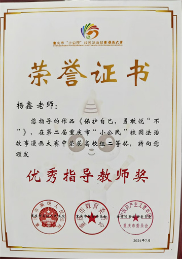 近日,由市高法院、市教委、团市委联合举办的第二届重庆市“小公民”校园法治故事漫画大赛获奖情况通报中,beat365荣获高校组二等奖1名,三等奖2名,优秀奖2名,优秀指导教师3名。